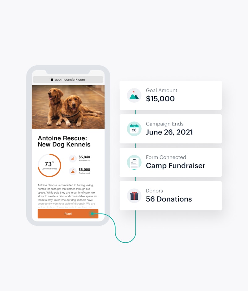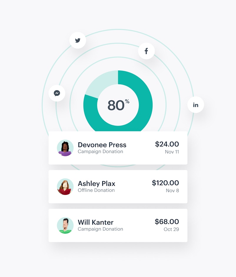 - Payments are automatically applied to the goal amounts on the public campaign pages