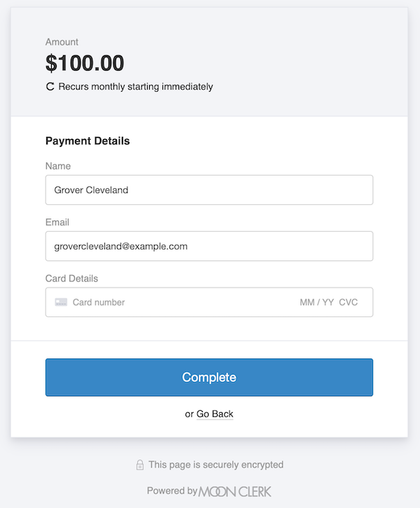 - Connect the Package to the MoonClerk payment form you want your payers to check out on.